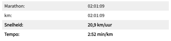 Al jaren is Eliud Kipchoge een levende looplegende. Een marathon in 2:01:09 betekent een tempo van 2:52 /km.
