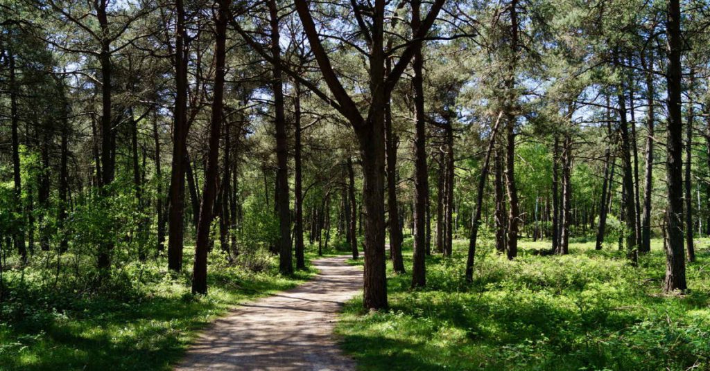 Na een paar kilometer schijnt er opeens een vreemd licht aan het einde van het bospad. Het blijkt wit zand, een dramatische decorwisseling na het geruststellende, gefilterde boslicht. Overal kleine duinheuveltjes en door de wind geboetseerde vliegdennen, hier en daar een eenzame berk. Wie niet oplet, laat zijn voet neerkomen op iets wat eerst een glanzende tak lijkt, dan een kleine, bruine slang – het is een grote hazelworm, een pootloze hagedis die op deze open plekken de warmte van de zon zoekt.