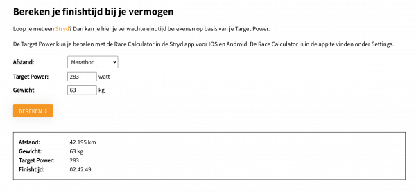 Ha Egon, mijn eerdere ervaring is wel dat het exact klopt. Stryd voorspelde 2:50 en ik liep 2:50:42. Ook met een 10 kilometer kwam de voorspelling van Stryd eerder precies uit.