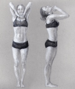 – Hou ruggengraat recht. Buig alleen de nek. Kijk naar boven en naar achteren.