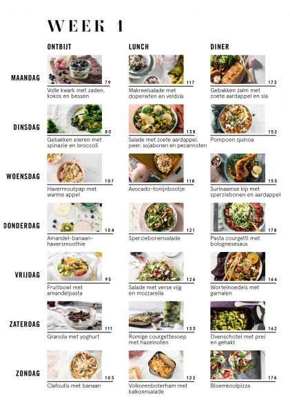 Het kookboek heeft overzichtelijke weekmenu’s en houdt rekening met een goede verhouding tussen eiwitten, koolhydraten en vetten.