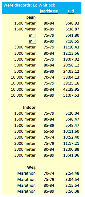 We zijn Ed daarna gaan volgen en hielden met regelmaat e-mail contact. Ed bleek op 6 maart 1931 in Londen te zijn geboren en is later naar Canada geëmigreerd. Dagelijks trainde hij liefst 3 uur vlakbij zijn huis op een begraafplaats. Ed Whitlock is de beste masteratleet ooit en we verwachten niet dat dit snel geëvenaard zal worden.