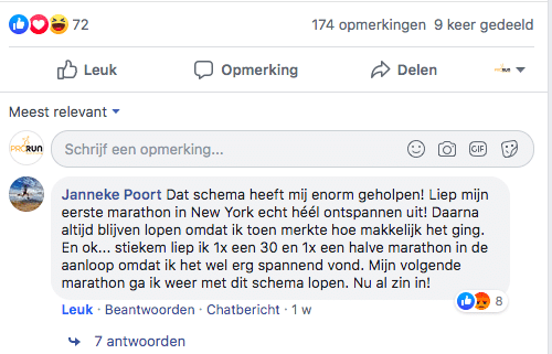Je bent of voor of tegen: het 14-kilometer-schema van trainster Stans van der Poel. Een artikel over het 14-kilometer-schema maakte op Facebook veel los. 174 reacties en de meningen liepen nogal uiteen.