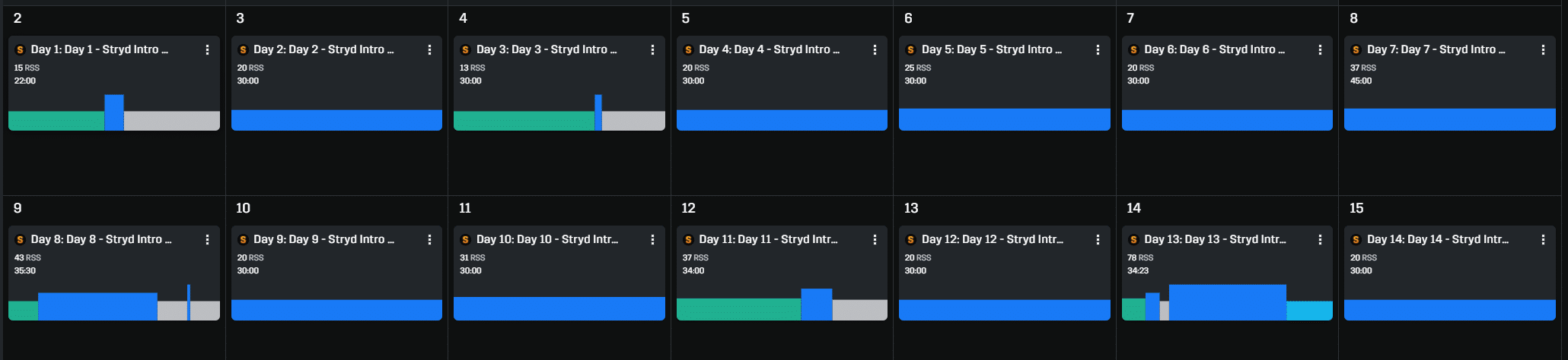 Als je nieuw bent op het gebied van lopen op vermogen dan is het goed om het “Intro to Power plan” van Stryd te volgen. Navigeer in de app van Stryd naar Instellingen > Training Plans. Kies bij het toevoegen voor “Intro to Power”. In dit schema van 2 weken krijg je dagelijks een training van Stryd. Van de 14 trainingen zijn er 9 op lage intensiteit, de zogenaamde hersteltrainingen. Het is geen probleem om een aantal van deze trainingen over te slaan. Belangrijk zijn de 5 trainingen op hogere intensiteit. Probeer deze zo goed mogelijk volgens de richtlijnen van Stryd uit te voeren. Je vindt een uitleg bij elke training in je Powercenter en in de Stryd app.